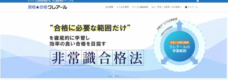 「合格に必要な範囲だけ」に絞り込んだ独自のカリキュラム(非常識合格法)が特徴のWeb通信講座。大手予備校よりも安価な価格設定に加え、教育訓練給付制度を利用することで受講料の20%が戻ってくるため、コスパ重視の社会人に選ばれています。
