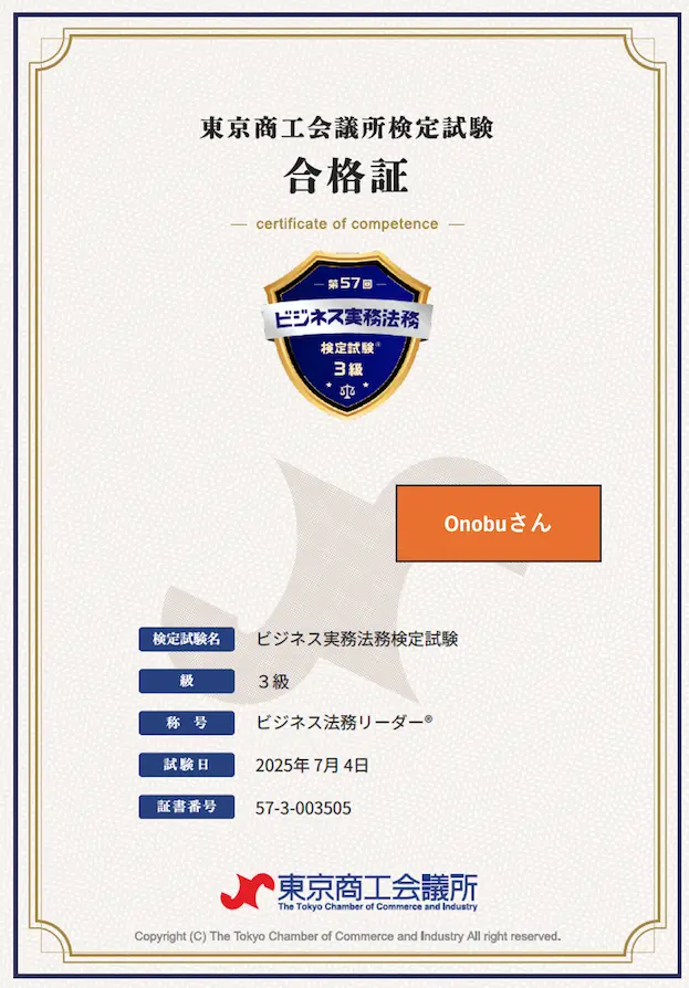 ビジネス実務法務検定試験は、東京商工会議所が主催する、ビジネスに必要な法律知識を問う検定です。