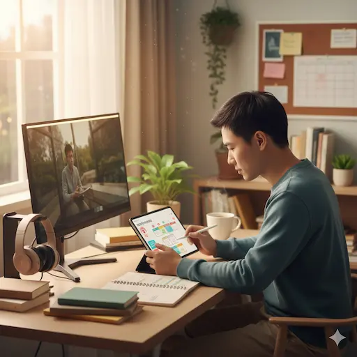 - ながら時間: 家事や単純作業中は、Youtubeの講義動画を「聞き流し」学習。